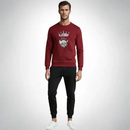 KING Printed Maroon Tracksuit Sweatshirt & Trouser | Warm & Comfortable Winter Wear | Large