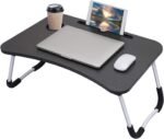 Laptop Table | Black Color | Foldable Legs, Tablet Groove & Cup Slot | Perfect for Working, Reading, Writing, and Eating
