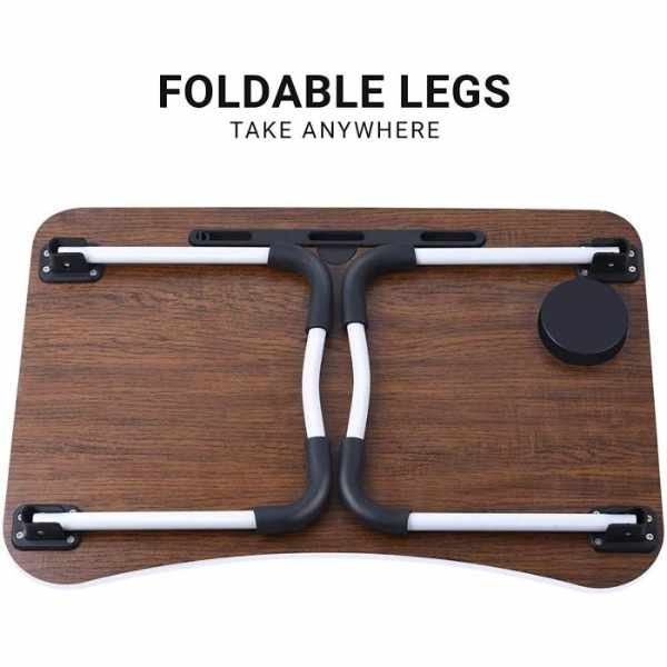 Laptop Table | Brown Color | Foldable Legs, Tablet Groove & Cup Slot | Perfect for Working, Reading, Writing, and Eating