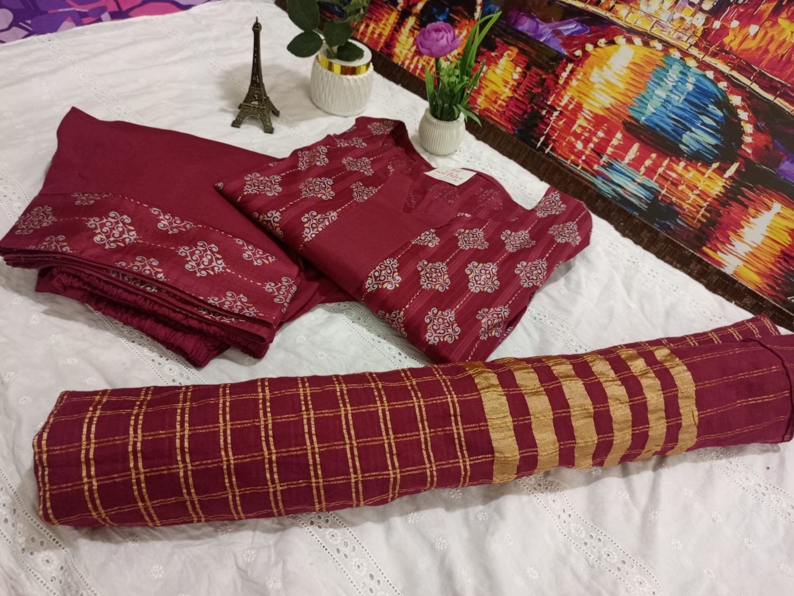 Mehroon Lawn Cotton 3 Piece Embroidered Suit with Dupatta – Elegant Summer Collection